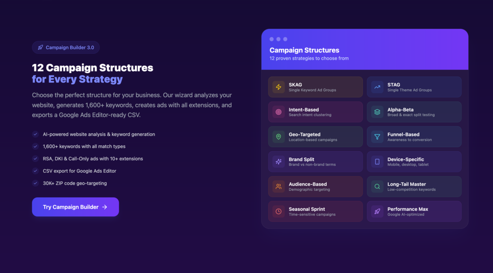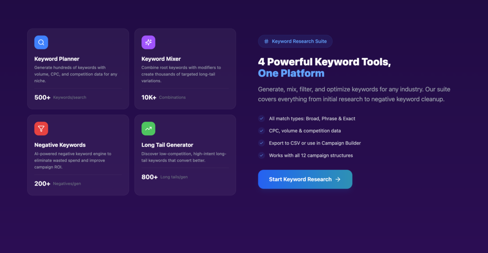 โ Full keyword suite (Planner, Mixer, Negatives, Long Tail)